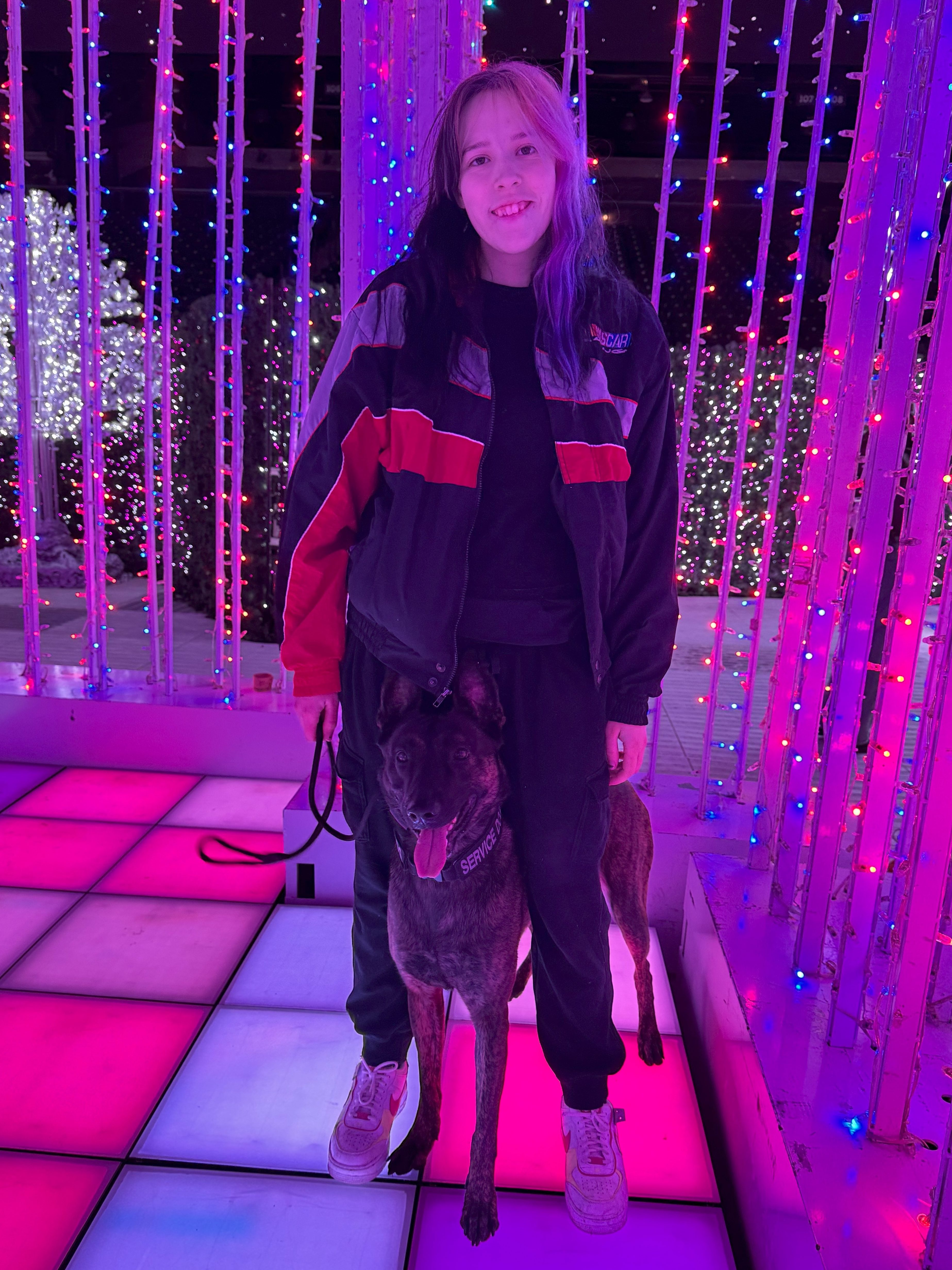 Cinder, my 3-year-old Dutch Shepherd and demonstration dog, is an energetic and “spirited” girl. She’s fully off-leash trained, allowing us to spend tons of time hiking together and enjoying activities like fetch and tug at local parks. Cinder loves every person she meets, especially if you’ll throw her ball!